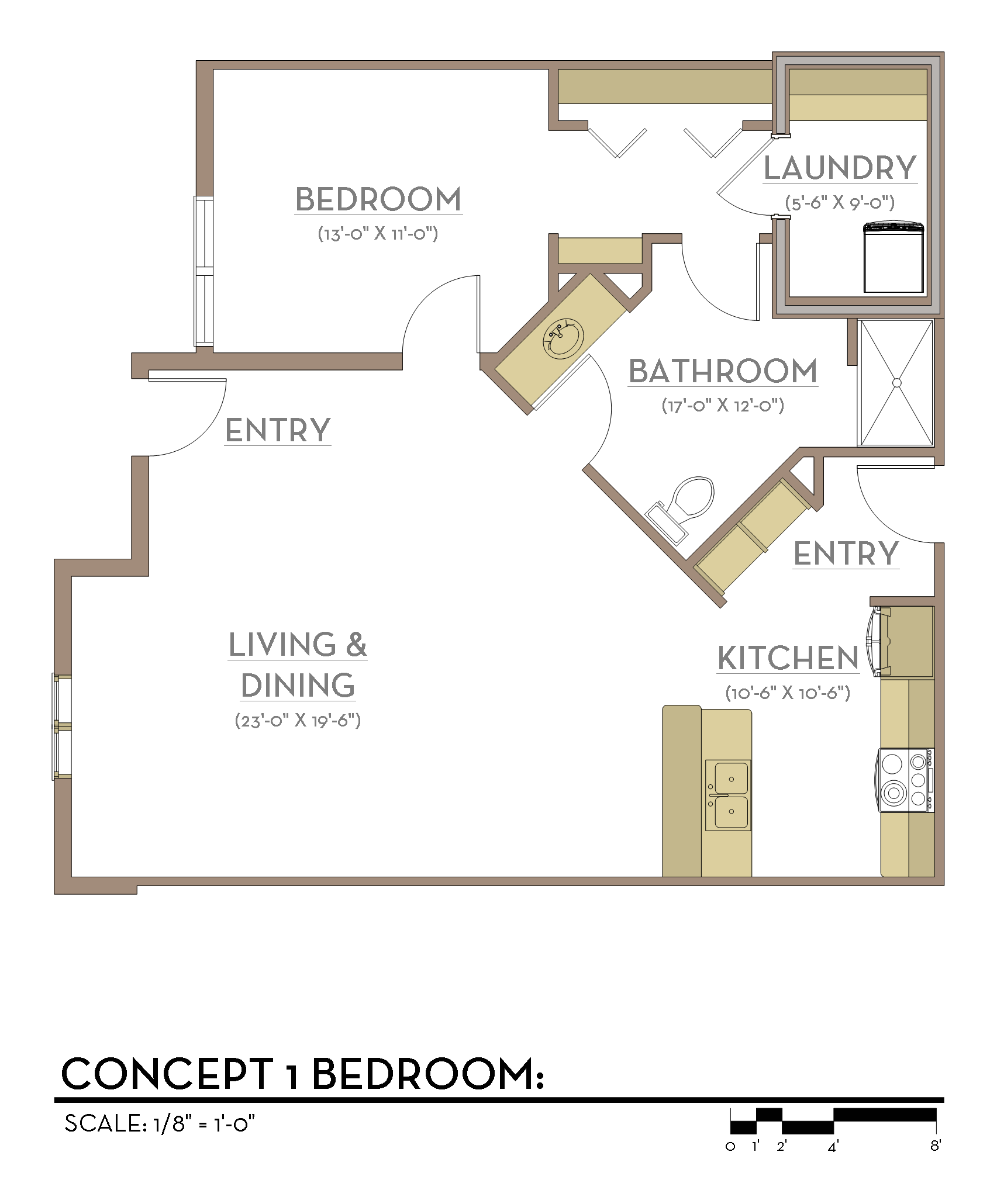 Your CURE Home has been designed with the specific intent that your desire to remain in their home until end of life can be realized. With that goal in mind, and without sacrificing a homey comfortable interior design, accessibility standards have been incorporated into the design. Examples of such features include: